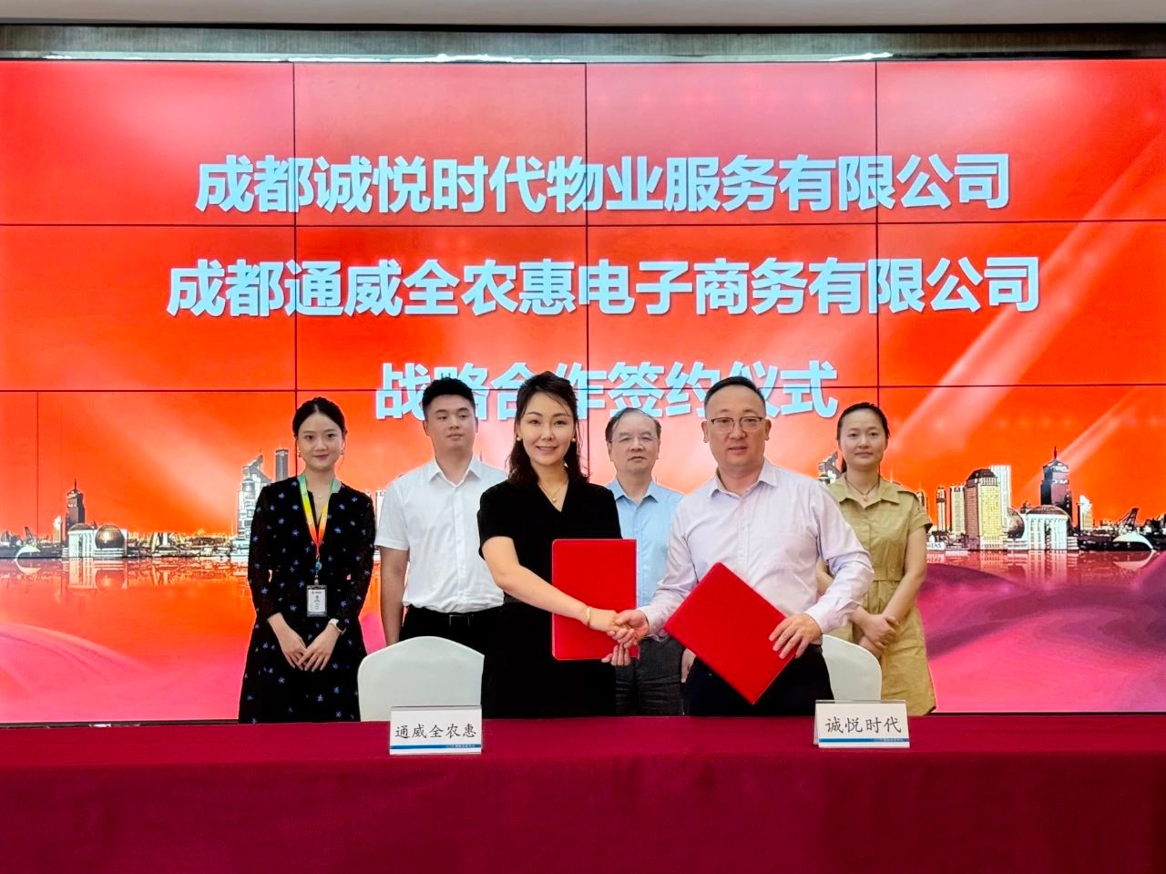 8月20日,成都诚悦时代物业服务有限公司与成都通威全农惠电子商务有限公司签署战略合作协议,通威食品总经理助理、通威全农惠公司总经理王珊与成都诚悦时代物...