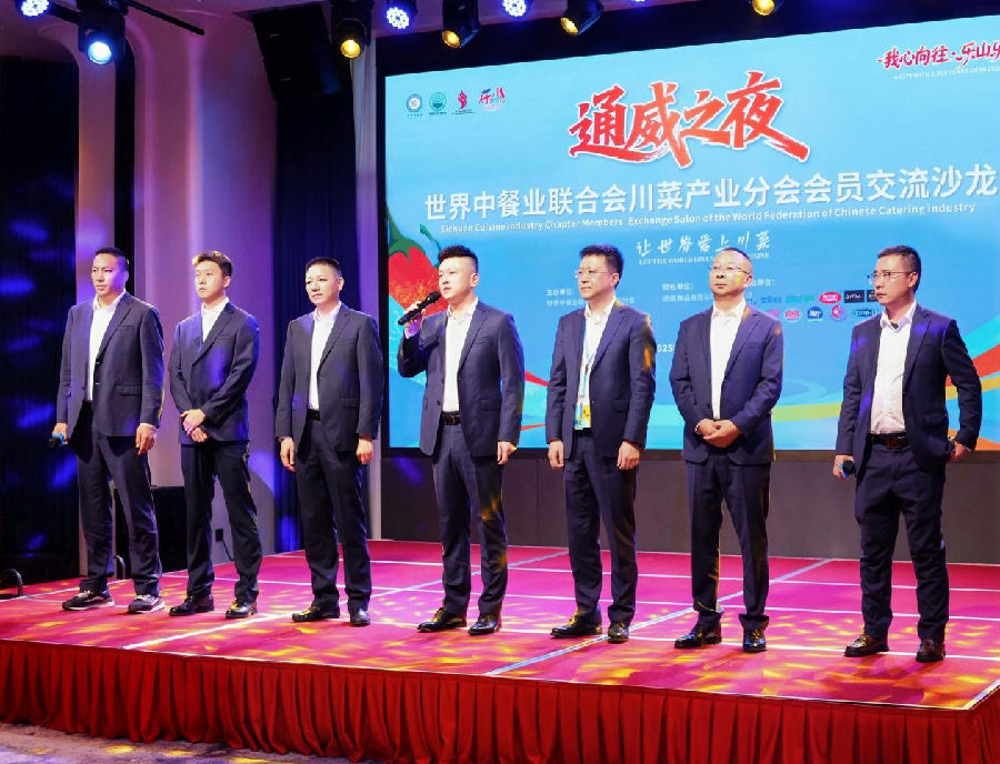 作为大会亮点活动之一,“通威之夜——世界中餐业联合会川菜产业分会会员交流沙龙”成功举办。通威食品总经理陈波在晚宴上率领管理团队向与会嘉宾致辞,感谢广大餐饮伙伴长期以来的支持。陈总提到,通威集团董事局主席刘汉元先生曾强调:“最基础的食品安全、未来的能源安全,通威这两个战略目标和愿景,是真正对人类有贡献的,让我们睡觉都很踏实。”通威食品始终将食品安全作为企业发展的基石,持续聚焦产品质量与诚信合作,期待与各方携手共建透明、可信的餐饮供应链生态,助力川菜产业走向世界。