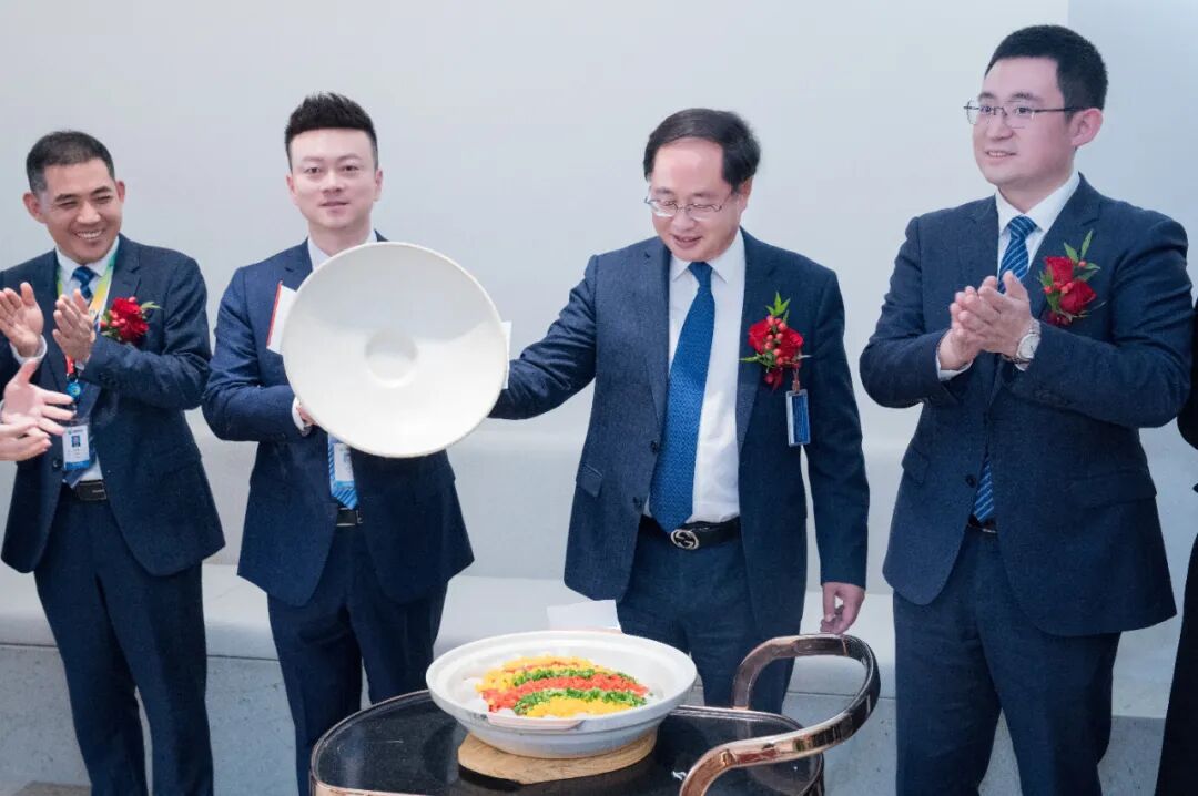 仪式现场还特别设置了“鸿运开彩”环节。严董亲自开启寓意“鸿运当头、年年有余”的吉祥鱼头,祝愿通威食品事业更上一层楼,发展独占鳌头。