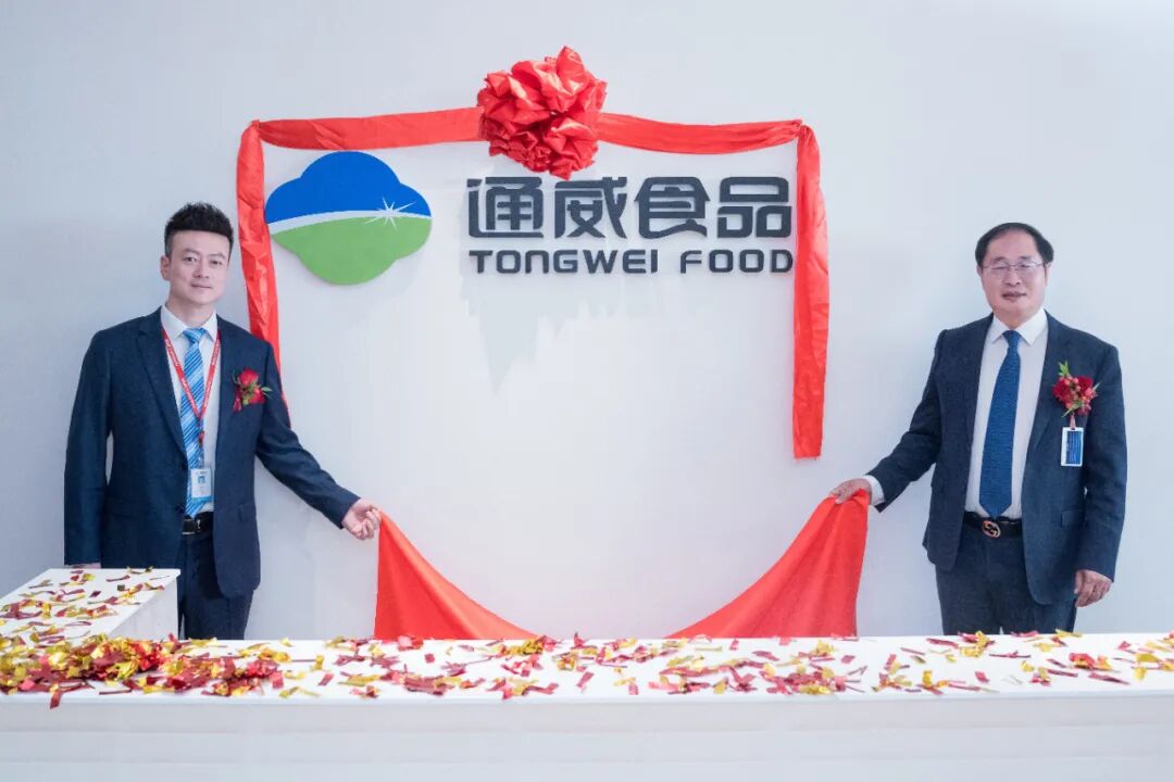 在全场热烈的掌声中,严董与陈总共同为入驻仪式揭幕。随着红绸落下,通威食品的标识在新址熠熠生辉,照亮了奋斗之路,预示着通威食品的明天必将更加辉煌。